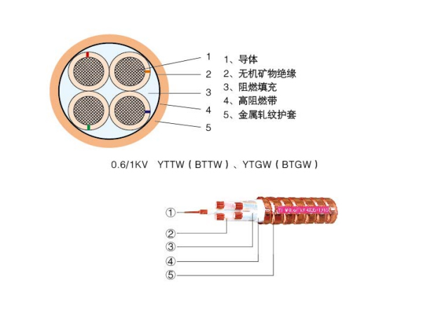 柔性金屬護(hù)套無(wú)機(jī)礦物絕緣防火電纜YTTW、YTTWV、WD- _YTTWY、BTTW、BTTRZ、RTTW、BTTE、BTWTZ、BTWTYZ、GAN- BTGZ、GAN-BTGY、HFTGB、HFTGBY。